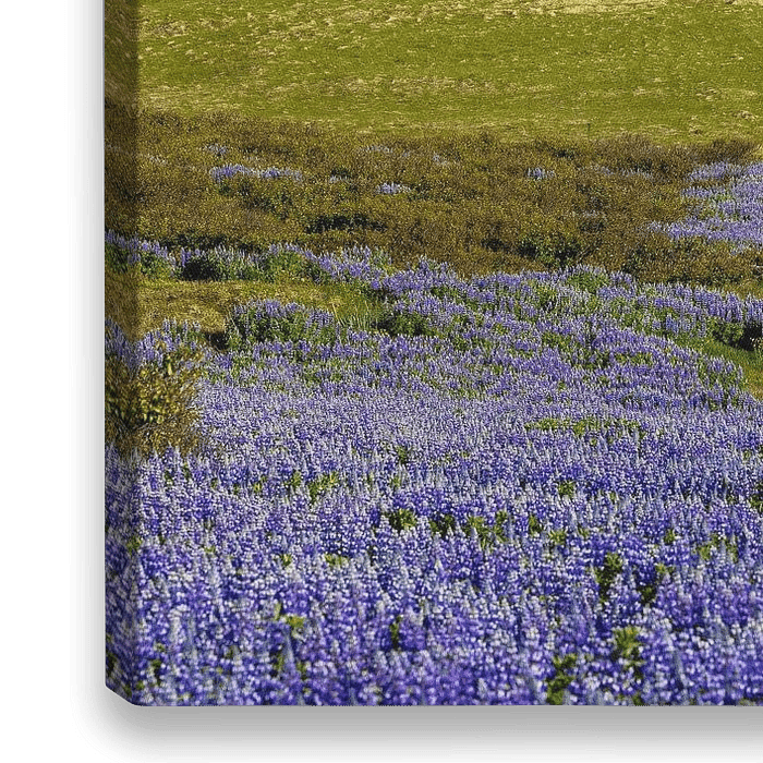 Bestelle dieses Landschafts-Wandbild Typische isländische Kirche mit Lupinen, Island von Adelheid Smitt als Reproduktion auf Leinwand, Alu-Dibond, als Poster, Fototapete oder Acrylglasbild.