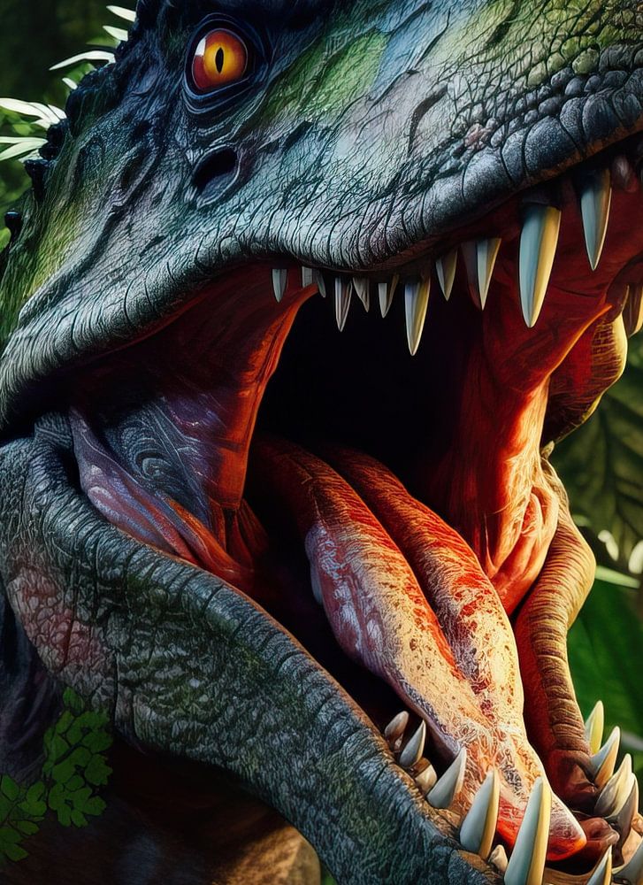 Was den T-Rex so furchterregend machte, waren seine scharfen, spitzen Zähne. Er hatte riesige Kiefer mit fast 60 Zähnen, die bis zu 20 Zentimeter lang waren! Mit diesen mächtigen Zähnen konnte der T-Rex seine Beute wie andere Dinosaurier zermalmen und verschlingen. Er war einer der größten fleischfressenden Dinosaurier, die je gelebt haben.