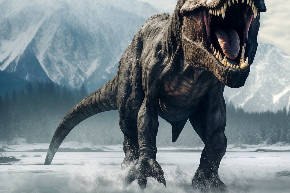 Tyrannosaurus Rex geht allein in den kalten See Eiszeit