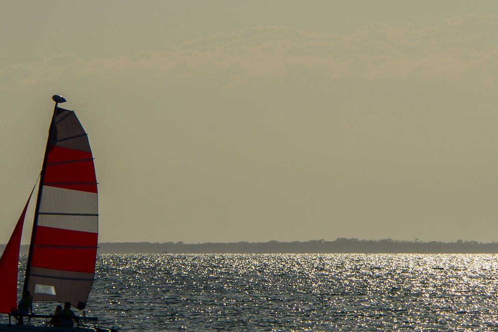 USA, Florida, Segelschiff im Wind des Ozeans mit Sonnenreflexionen