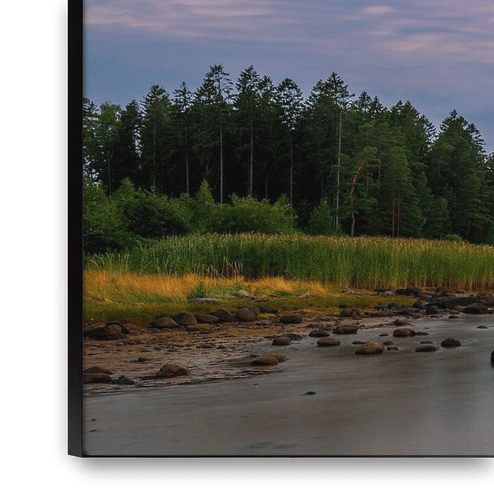 Ihre gewählte Kunst auf Leinwand, gespannt in einem Aluminiumrahmen. Schnell und einfach austauschbar für eine frische Ausstrahlung und ganz nach Ihren Wünschen.