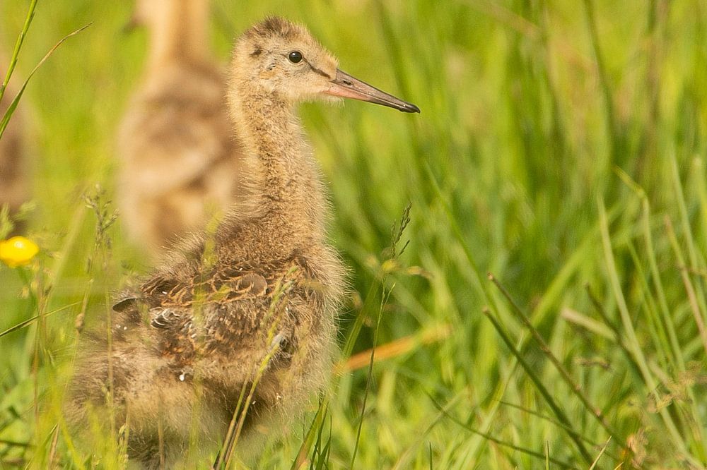 Uferschnepfe (Limosa limosa), Küken auf einer Wiese