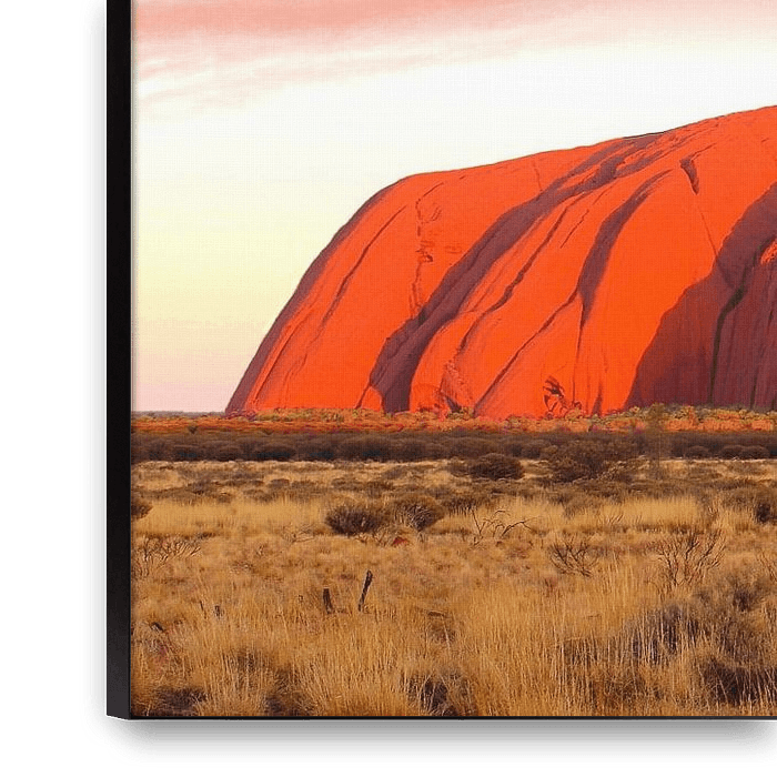 Bestelle dieses Stilleben Uluru (Ayers Rock) Sonnenuntergang von Inge Hogenbijl als Reproduktion auf Leinwand, Alu-Dibond, als Poster, Fototapete oder Acrylglasbild.