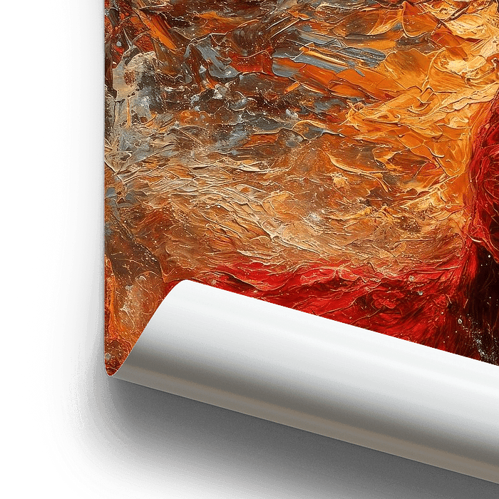 Dieses Gemälde zeigt ein Paar in einer liebevollen Umarmung, beleuchtet von einem Hintergrund, der von der Wärme ihrer Leidenschaft zu brennen scheint. Die intensiven Farben und fließenden Bewegungen würden einen Raum mit sanfter Beleuchtung und warmer Dekoration vervollständigen.