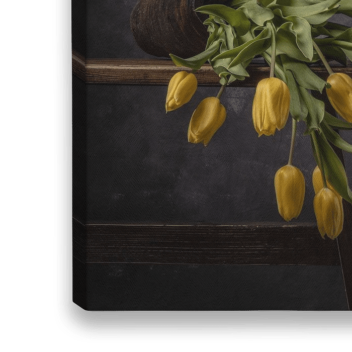 Bestelle dieses Blumen-Wandbild Umgefallene Tulpenvase von Peter Abbes als Reproduktion auf Leinwand, Alu-Dibond, als Poster, Fototapete oder Acrylglasbild.