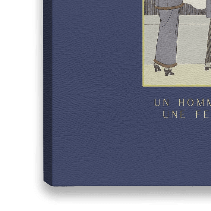 Ein historischer Modedruck mit einer modernen Wendung: "Un domme et une femme". Inspiriert vom Art Deco, einer Stilrichtung, die in den 1920er Jahren entstand. Neuer geschäftsmäßiger Stil gemischt mit modernen klaren Linien und Farben.