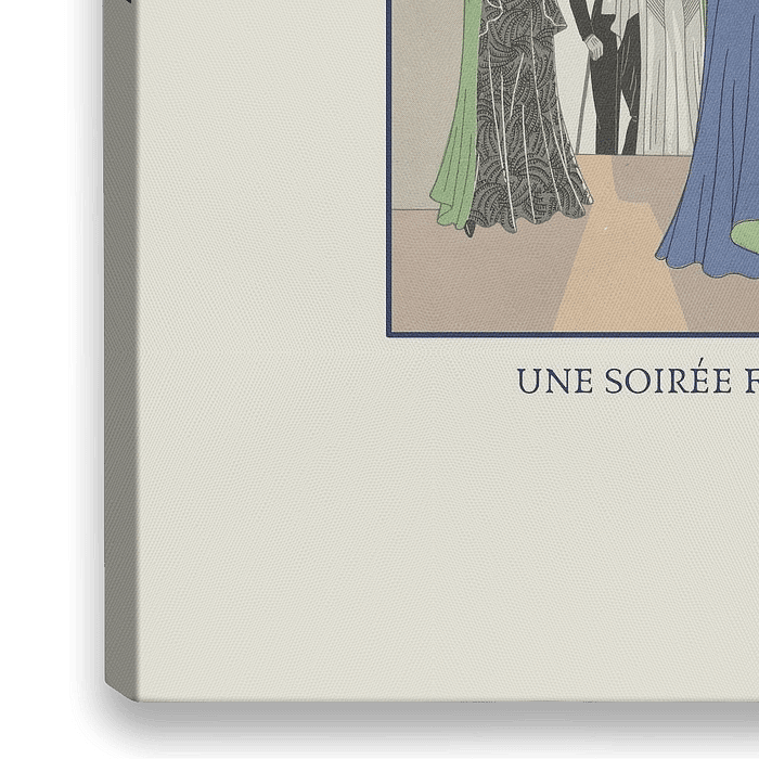 Ein historischer Modedruck mit einem modernen Twist: "Eine festliche Soirée". Inspiriert vom Art Deco, einer Stilrichtung, die in den 1920er Jahren entstand. New Businessmanship gemischt mit modernen klaren Linien und Farben.