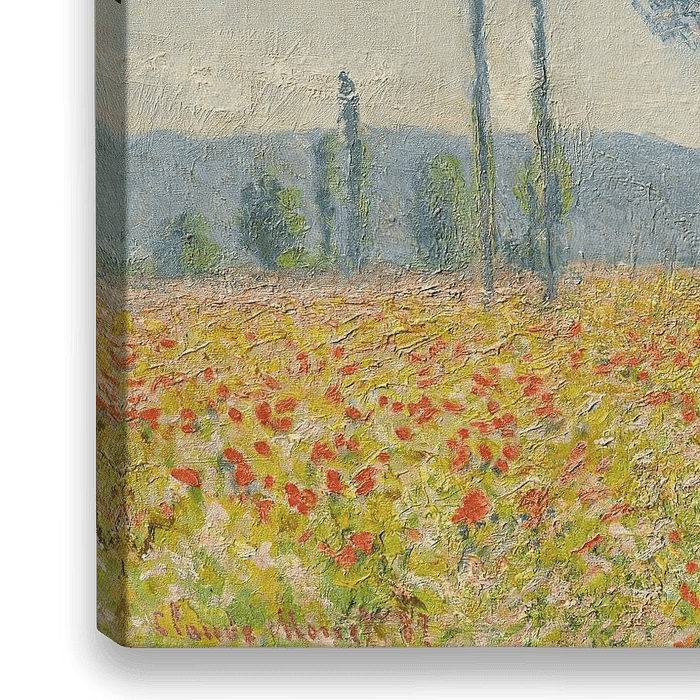 Unter den Pappeln, Claude Monet (1887) In dieser unbeschwerten Sommerszene zelebriert Claude Monet das intensiv leuchtende Rot der Mohnblumen. Die gemächliche Haltung der Kinder, die von Blumen und Gräsern umgeben sind, unterstreicht die anmutige Leichtigkeit. Die pastose, aus spontanen Pinselstrichen bestehende Oberfläche spiegelt die schimmernden Farben des sonnenerfüllten Augenblicks wider.