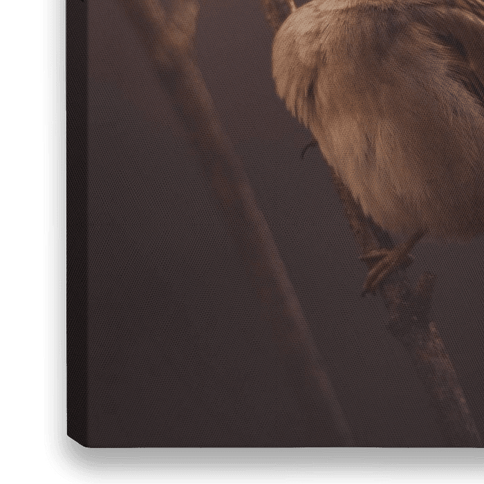 Dieses Kunstwerk fängt den einfachen Charme eines Spatzen ein, der sich zwischen den Ästen versteckt. Mit seiner bescheidenen Erscheinung und den sanften Farben strahlt der Spatz ein Gefühl der Ruhe und Gemütlichkeit aus. Die natürliche Umgebung mit ihren subtilen Braun- und Grüntönen spiegelt die Verbundenheit dieses kleinen Vogels mit…