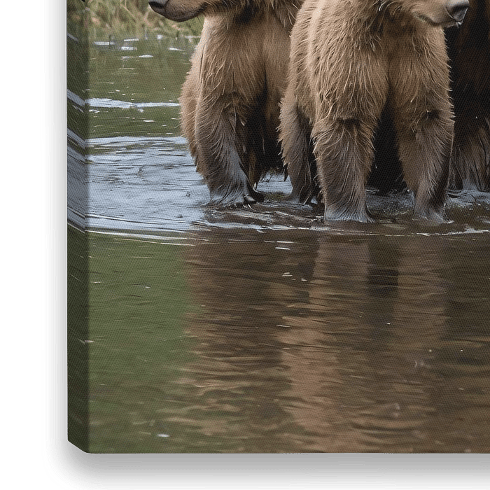 Hier haben wir ein faszinierendes Naturschauspiel, das durch die Linse des Fotografen eingefangen wurde. Dieses Bild, das die unverwechselbare Intimität zwischen einer Bärenmutter und ihren Jungen zeigt, ist ein Meisterwerk des Timings und der Komposition.
