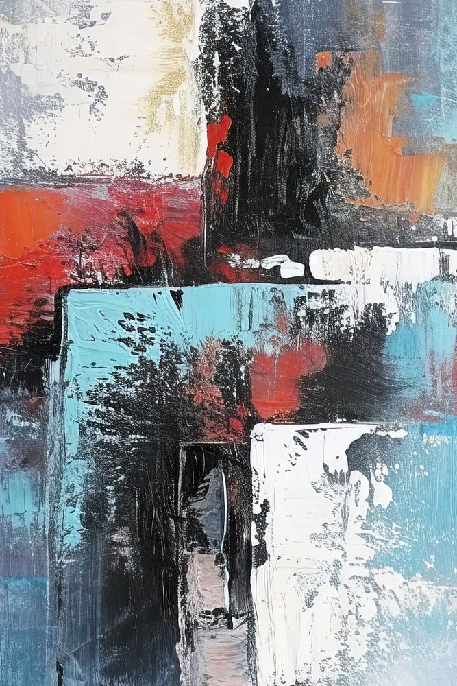 Details: abstrakt, Landschaft, modern, blau, rot, weiß, schwarz, Leinwand, Textur, Kontrast