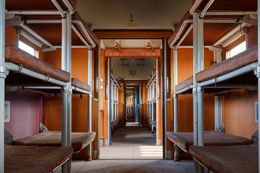 Auf einem Rangierbahnhof zwischen den noch im Einsatz befindlichen Zügen stand diese Schwelle in einem längst verlassenen Zug.