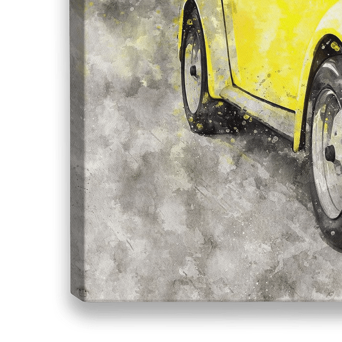 Bestelle dieses abstrakte Wandbild VW Käfer, Gelb-Schwarzer Renner von Theodor Decker als Reproduktion auf Leinwand, Alu-Dibond, als Poster, Fototapete oder Acrylglasbild.