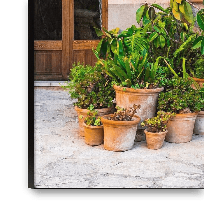Bestelle dieses Blumen-Wandbild Valldemossa, altes mediterranes Dorf auf der Insel Mallorca, Spanien von Alex Winter als Reproduktion auf Leinwand, Alu-Dibond, als Poster, Fototapete oder Acrylglasbild.