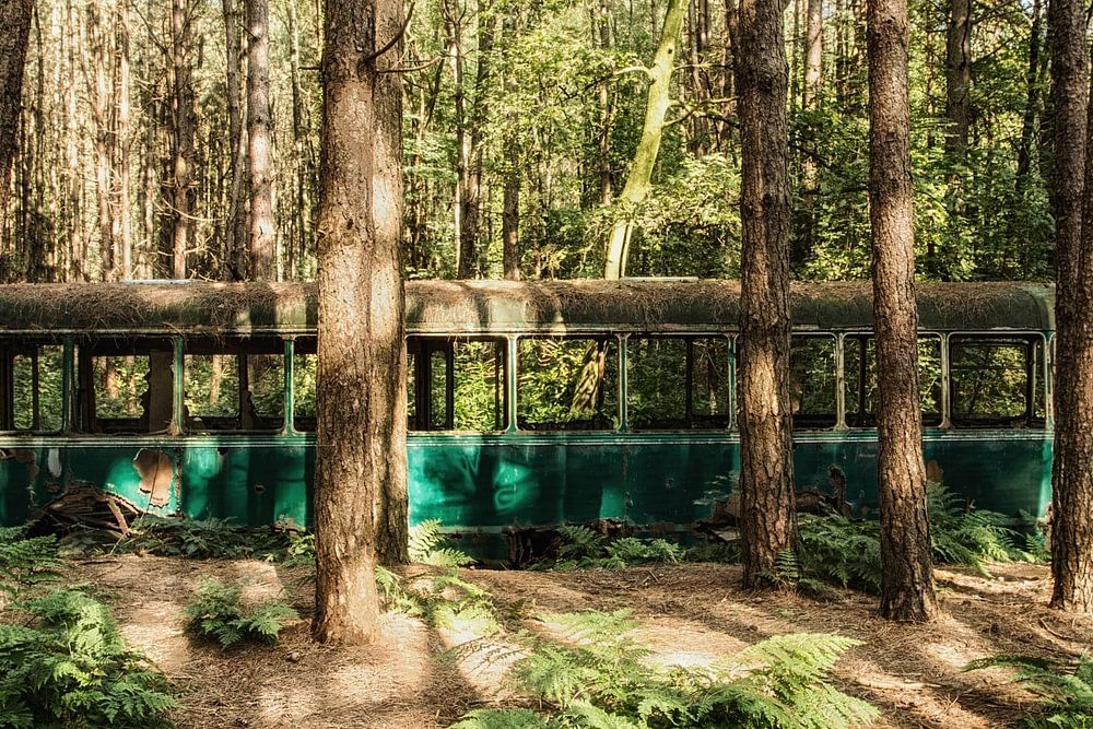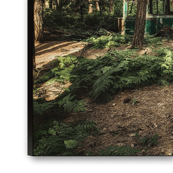 Ein alter Bus, verlassen in einem abgelegenen Wald.