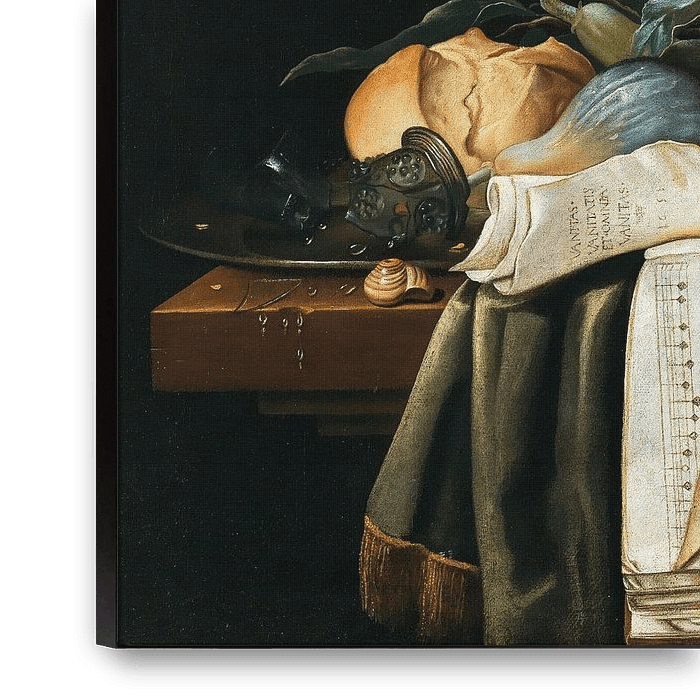 Ein Vanitas-Stillleben mit Früchten, einem vergoldeten Kelch, einer Partitur, einer Muschel und einem Schädel, Joris van Son Das vorliegende Stillleben mit seiner sorgfältigen Wiedergabe von Texturen und der Modellierung von Formen durch den Einsatz subtiler Beleuchtung stammt von der Hand des Antwerpener Barockmeisters Joris van Son. Berühmt für seine Pronkstillevens und weniger ostentativen Darstellungen von Früchten und Vanitas-Stillleben, verströmen van Sons Werke den starken Einfluss des bahnbrechenden niederländischen Meisters Jan Davidsz. de Heem (1606-1684), der eine vollendete Antwerpener Werkstatt betrieb. Van Son war möglicherweise Assistent des großen Meisters, bevor er 1633 selbst zum Meister der Antwerpener Sankt-Lukas-Gilde ernannt wurde.