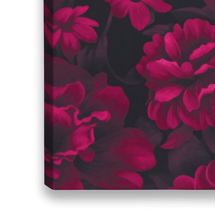 Opulente barocke Blumenkunst mit einem subtilen Samt-Look in charmantem dunklen Rot. Perfekt geeignet für einen modernen oder traditionellen Raum, wenn Sie große Blumen lieben. Die lebendigen Schattierungen von rosa karminroten Farben schafft eine elegante und einladende Dekoration. Als bereichernde, trendige Interpretation der Natur…