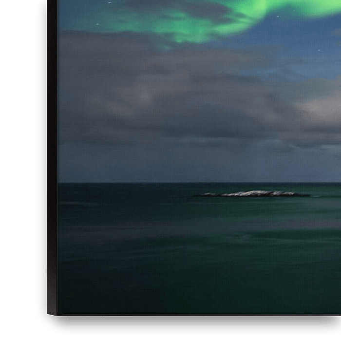 Aurora above sea and Verberget mountains, Lofoten