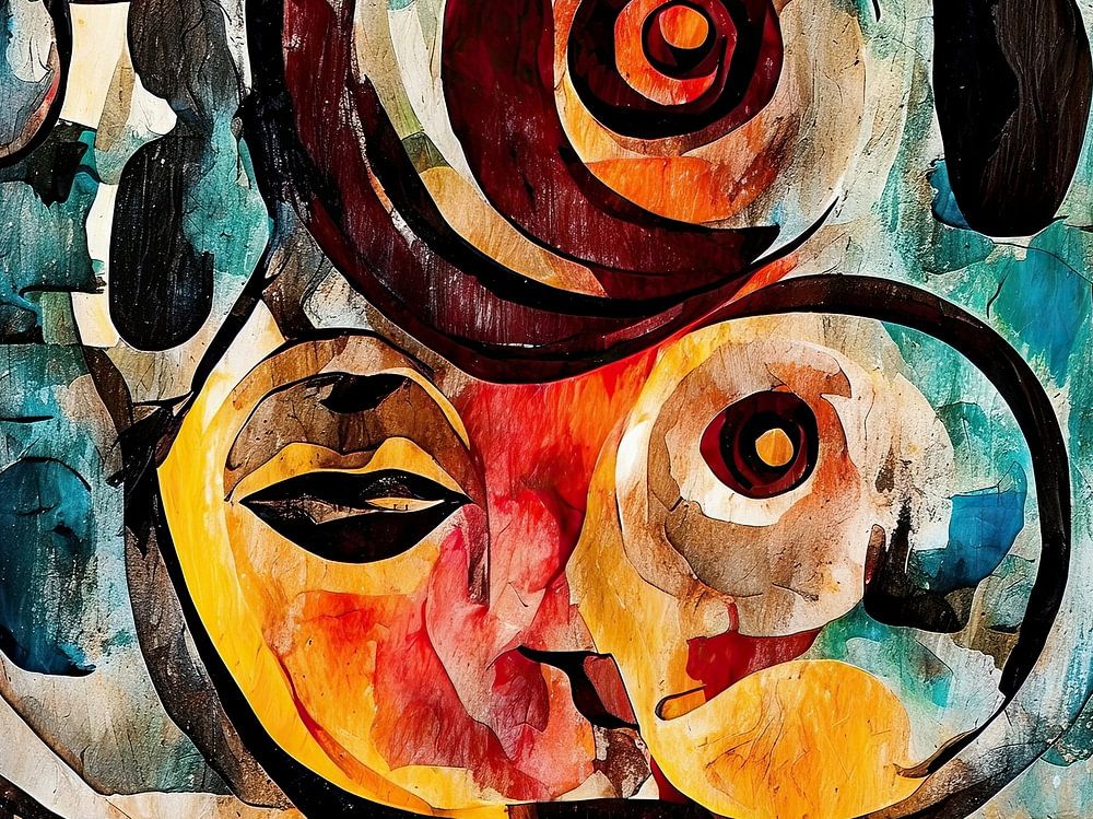 Im vierten Werk der Serie „Stille Resonanzen“ explodiert ein lebendiges Farbspiel aus Rot-, Blau-, Gelb- und Grüntönen, die wie Gedankenfragmente auf der Leinwand tanzen. Das abstrakte Gesicht, das von intensiven Spiralen und Kreisen umrahmt wird, scheint sich in einem Spannungsfeld zwischen äußeren Eindrücken und innerer Reflexion zu befinden. Die Schichten und Überlagerungen der Farben und Formen erzeugen eine dynamische Komposition, die die unaufhörliche Bewegung des Geistes und der Emotionen widerspiegelt.