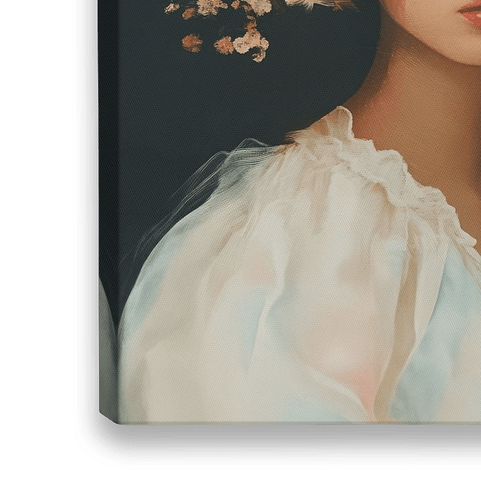Hidden Beauty, klassisches Porträt einer jungen Frau, die von Blumen bedeckt ist. Ein besonderer Blickfang für Ihr Interieur! Wählen Sie das Format und das Material für dieses Werk und machen Sie es zu Ihrem eigenen.