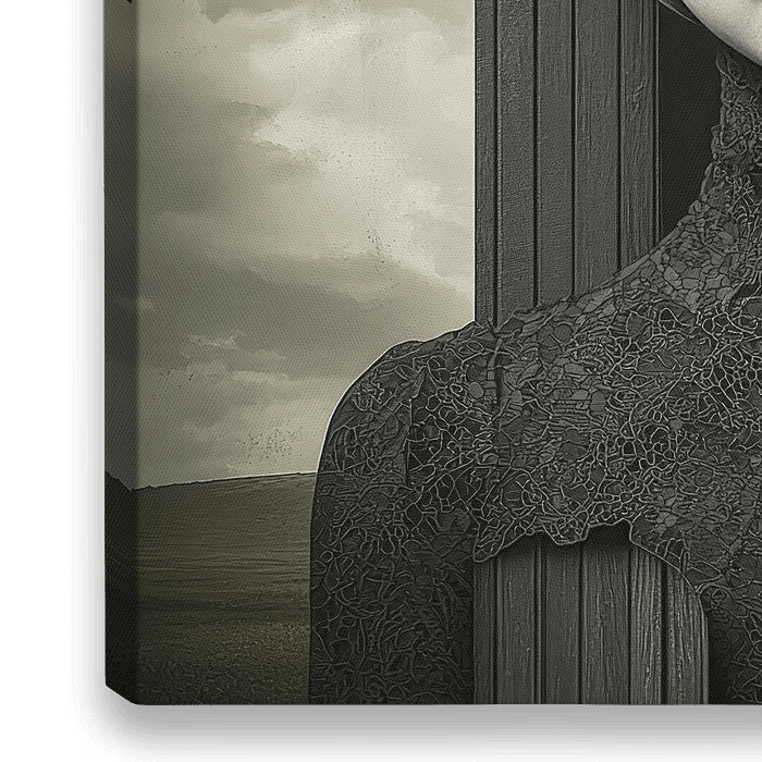In diesem Bild sieht man eine mysteriöse Figur, deren Augen mit einem breiten, schwarzen Band verhüllt sind, als ob sie bewusst darauf verzichtet, die Welt um sie herum wahrzunehmen. Das schwarze Band verleiht dem Bild eine symbolische Bedeutung und lässt den Betrachter über den Unterschied zwischen Sehen und Verstehen nachdenken. Die…