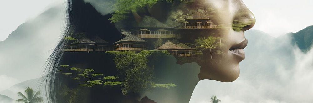 Die Stimmung, die ich hier erzeugen möchte, ist eine des Staunens und der Selbstbetrachtung. Die Doppelbelichtung schafft eine träumerische Atmosphäre, die den Betrachter einlädt, die Tiefen der Natur und der Seele zu erforschen. Die Farbtöne sind weich und einladend, und das Ganze strahlt eine zeitlose Eleganz aus.