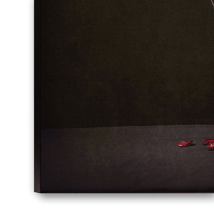 Die von mir geschaffene Stimmung ist von melancholischer Eleganz und Nachdenklichkeit geprägt. Das Werk lädt uns ein, bei der Schönheit zu verweilen, die wir im Laufe der Zeit oft übersehen. Das Rot der Rosen symbolisiert Liebe und Leidenschaft, auch beim Loslassen.