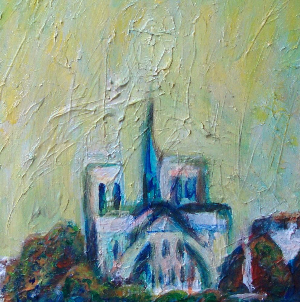 Een expressieve benadering van de Notre Dame.Acryl op gestructureerde ondergrond.