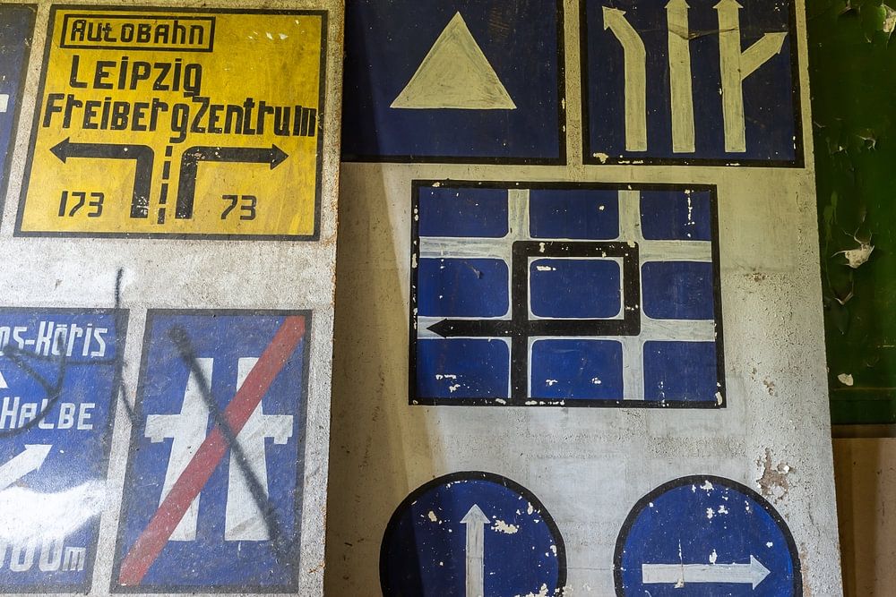 Überbleibsel einer Verkehrsschule für ehemalige sowjetische Soldaten, die auf dem ehemaligen Flugplatz Rangsdorf bis 1994 stationiert waren. Grosse Tafeln mit typischen deutschen verkehrssschildern, damit sich die sowjetischen Soldaten im DDR-Strassenverkehr  zurechtfinden konnten.
