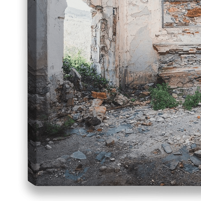 Bestelle das Foto Verlassene Kirche im Verfall mit Rissen in der Wand. von Roman Robroek – Fotos verlassener Gebäude als Reproduktion auf Leinwand, Alu-Dibond, als Poster, Fototapete oder Acrylglasbild.