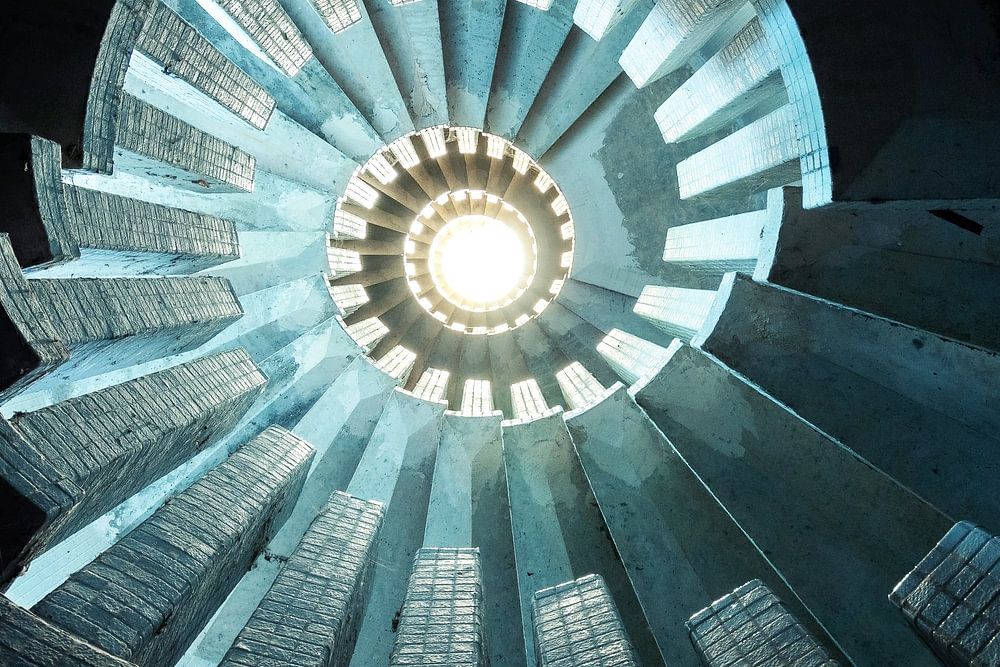 Ich habe die Treppe von unten nach oben fotografiert, am Ende befindet sich eine Lichtkuppel, durch welche ein wunderbares Licht in das Treppenhaus gelangt.