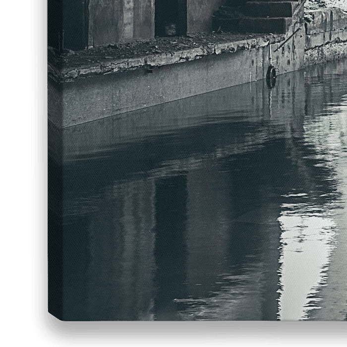 Der Keller eines stillgelegten Stahlwerks, wo sich die Eisenerzsilos im ehemaligen Kühlwasser spiegeln.