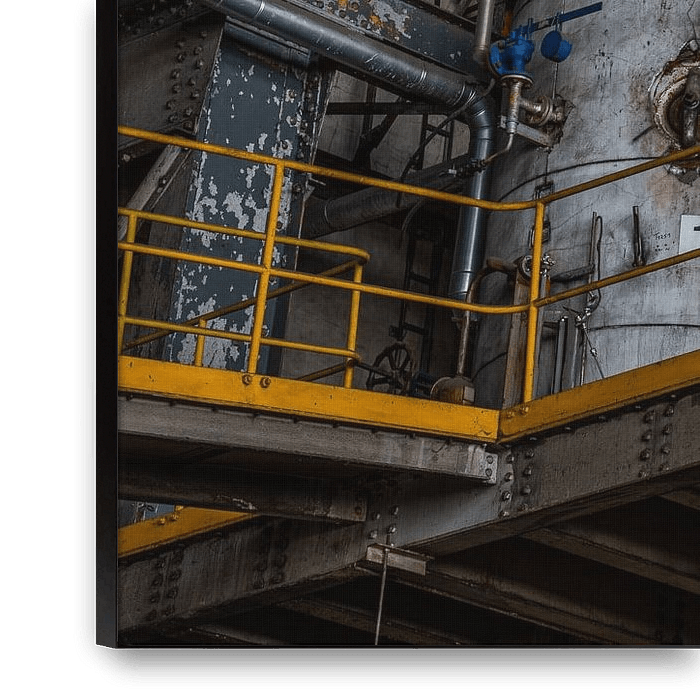 Entdecken Sie die bezaubernde Mystik von "Abandoned Beauty: Trapped in Time" mit diesem einzigartigen Leinwandfoto. Das Meisterwerk fängt den stillen Moment zweier weißer Entgasungstanks in einem verlassenen, mit Koksgas betriebenen Kraftwerk ein. Die intensiven Farben spielen ein faszinierendes Spiel mit dem auffälligen Gelb des…