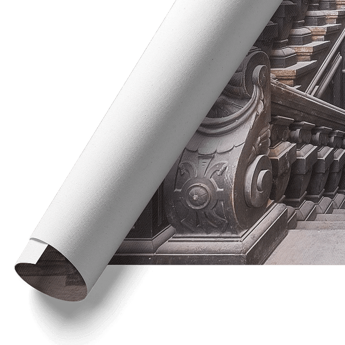 Bestelle das Foto Verlassene Treppe. von Roman Robroek – Fotos verlassener Gebäude als Reproduktion auf Leinwand, Alu-Dibond, als Poster, Fototapete oder Acrylglasbild.