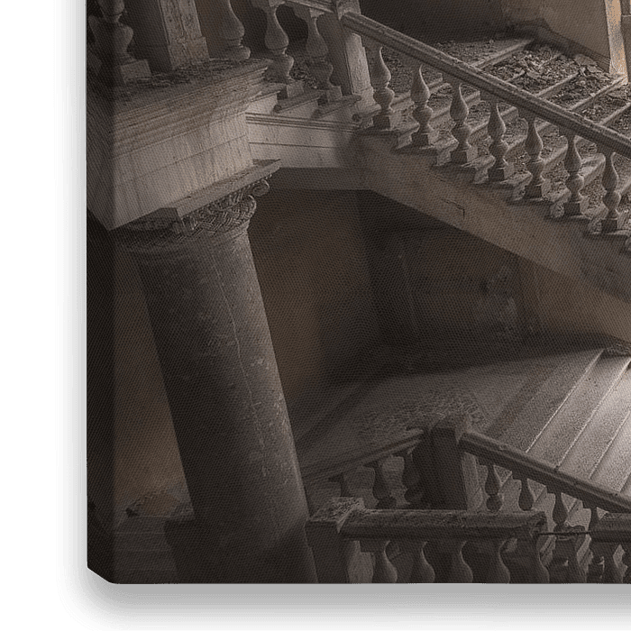 Bestelle das Foto Verlassene Treppe von Maikel Brands als Reproduktion auf Leinwand, Alu-Dibond, als Poster, Fototapete oder Acrylglasbild.