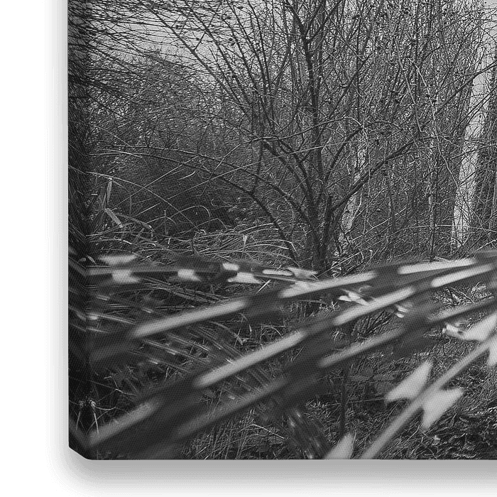 Schwarz-Weiß-Foto des HDR von einer verlassenen und baufälligen Villa in Doel, Belgien. Viele einzelne Häuser im Dorf Doel wurden aufgegeben und mit Stacheldraht unzugänglich gemacht, um Hausbesetzungen und Plünderungen zu verhindern.