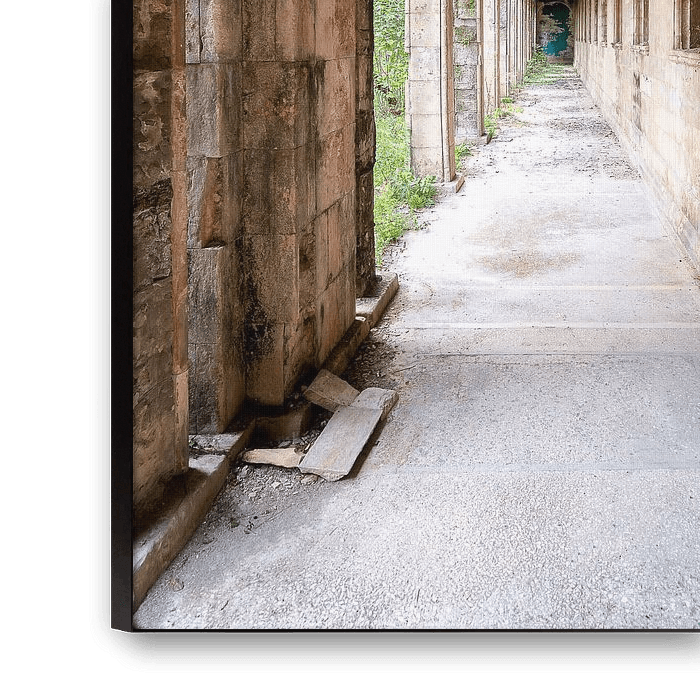 Bestelle das Foto Verlassener Flur im Verfall. von Roman Robroek – Fotos verlassener Gebäude als Reproduktion auf Leinwand, Alu-Dibond, als Poster, Fototapete oder Acrylglasbild.