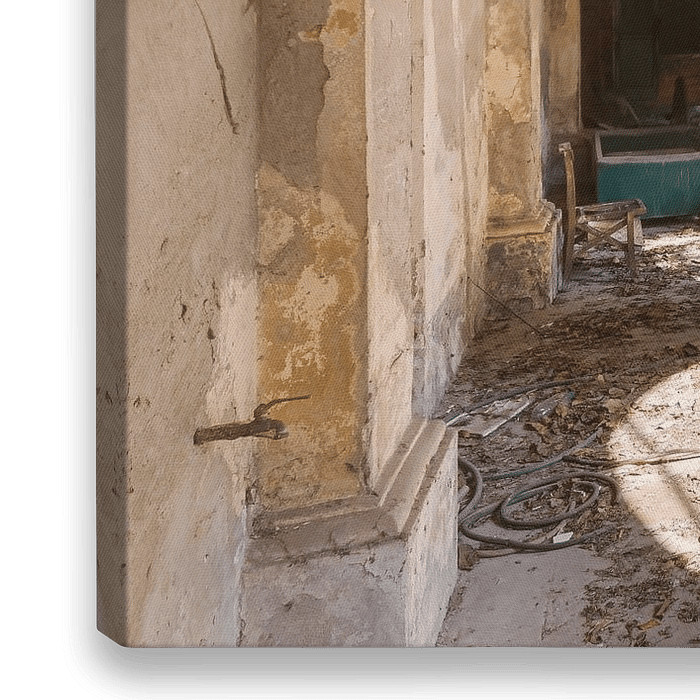 Bestelle das Foto Verlassener Hof. von Roman Robroek – Fotos verlassener Gebäude als Reproduktion auf Leinwand, Alu-Dibond, als Poster, Fototapete oder Acrylglasbild.