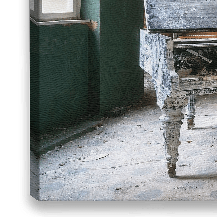 Bestelle das Foto Verlassenes Klavier. von Roman Robroek – Fotos verlassener Gebäude als Reproduktion auf Leinwand, Alu-Dibond, als Poster, Fototapete oder Acrylglasbild.