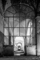 Ein schönes, verlassenes Gebäude mit langen Gängen, Gewölben und einem Innenhof im Zentrum einer norditalienischen Stadt.