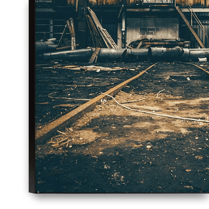 Bestelle das Foto Verlassenes Sägewerk von Die Utrechter Fotografie als Reproduktion auf Leinwand, Alu-Dibond, als Poster, Fototapete oder Acrylglasbild.