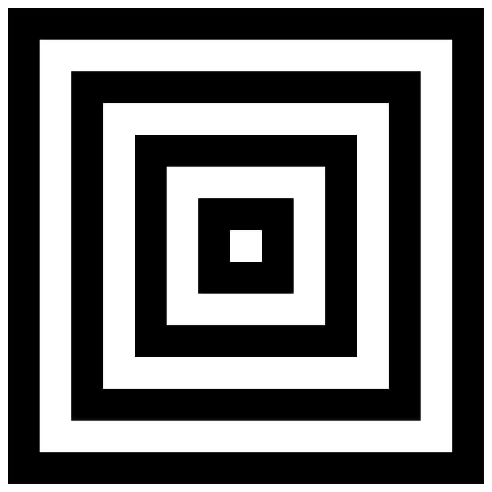 Zentrisch angeordnete Quadrat-Streifen, Anzahl der Schachtelungen N=8, Zentrum Weiß