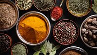 Verschiedene Gewürze mit Hintergrund Schwarz und von Oben