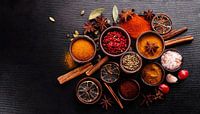 Verschiedene Gewürze mit Hintergrund Schwarz und von Oben