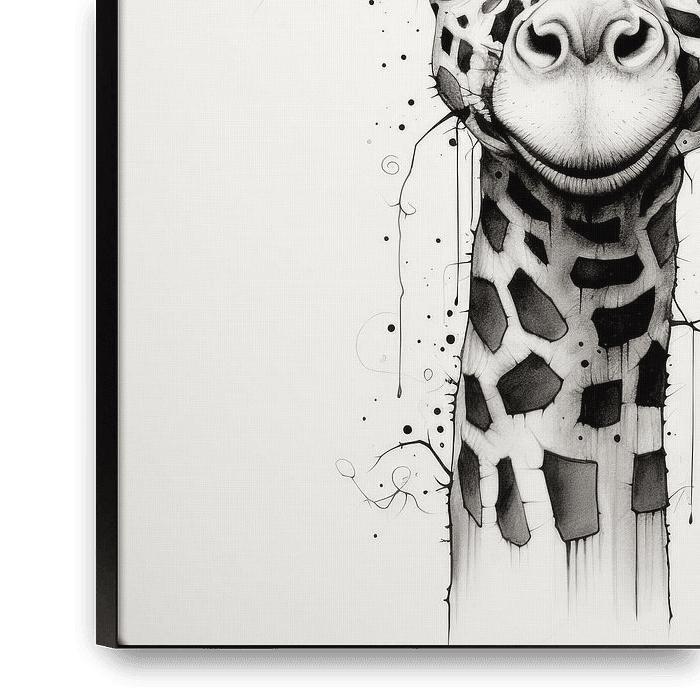 Bestelle dieses abstrakte Wandbild Verspielte Blicke: Die neugierige Giraffe von Eva Lee als Reproduktion auf Leinwand, Alu-Dibond, als Poster, Fototapete oder Acrylglasbild.