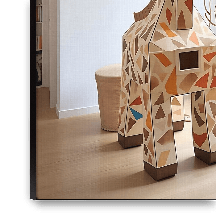 Dieses lebendige Porträt einer verspielten Giraffe ist eine fröhliche Ergänzung für jedes Kinderzimmer. Die Giraffe steht im Mittelpunkt und ist in leuchtenden Farben gemalt, die vor Energie sprühen. Ihre neugierigen Augen unterstreichen ihren verspielten Charakter. Ein perfektes Kunstwerk, das die Fantasie eines jeden Kindes anregt.