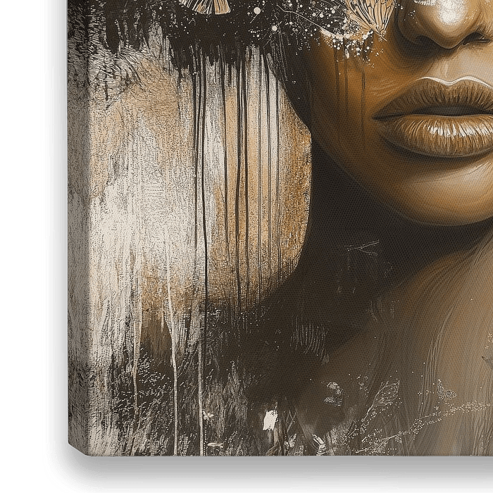 Dieses wunderschöne Kunstwerk fängt die Essenz von Träumen und Transformation ein. Eine Frau mit geschlossenen Augen, die von Schmetterlingen umgeben ist, strahlt ein Gefühl von Frieden und Introspektion aus. Die subtilen Erdtöne und die zarten Schmetterlingsflügel verleihen dem Bild einen Hauch von Natur und Magie und machen es zu…