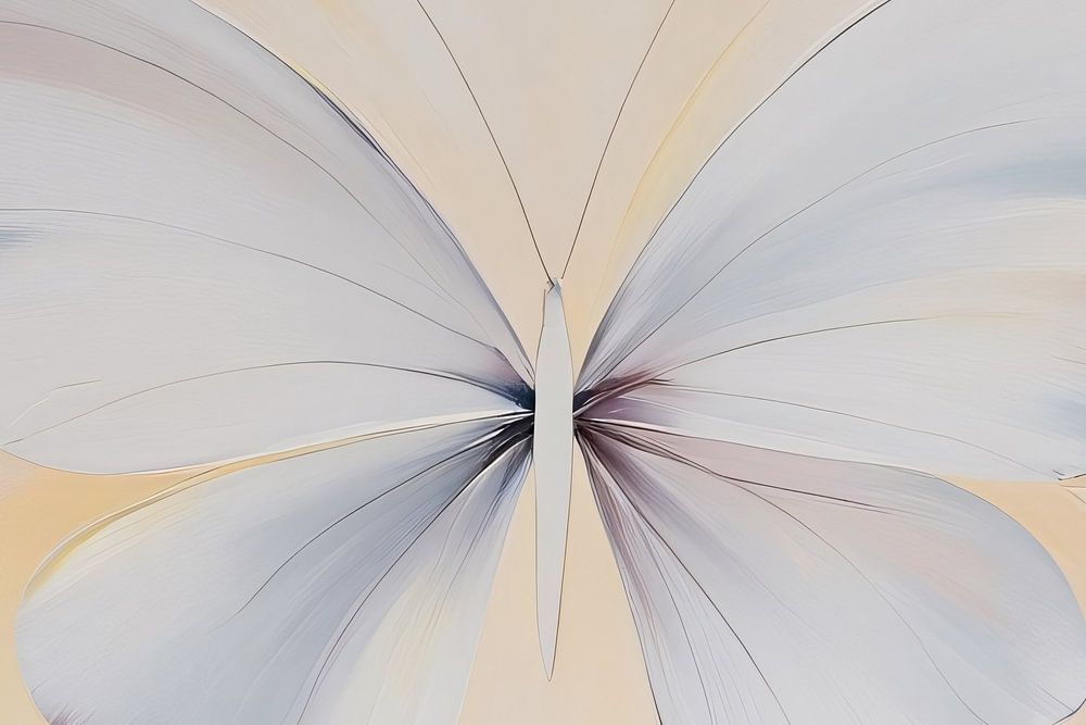Dieses wunderschöne Kunstwerk zeigt einen anmutigen und zarten Schmetterling, der in einer abstrakten, verträumten Welt schwebt. Das Design ist minimalistisch und verwendet sanfte Pastelltöne wie Weiß, Creme und Hellblau, was ihm ein beruhigendes und gelassenes Aussehen verleiht. Die Flügel des Schmetterlings sind dezent mit hellen Farbverläufen akzentuiert, was die Eleganz und Zartheit der Komposition unterstreicht. Dieses Kunstwerk passt perfekt in moderne und minimalistische Innenräume, insbesondere in Räume wie ein Schlafzimmer oder ein Büro, in denen Ruhe und Gelassenheit erwünscht sind. Das Design ist eine ideale Ergänzung für alle, die abstrakte Kunst und natürliche Schönheit in einer einfachen, stilvollen Form lieben.