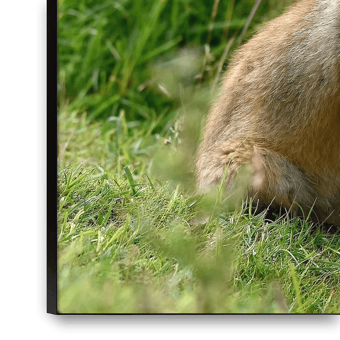 Der Fuchs träumt auf der grünen Wiese, mitten in der Natur...