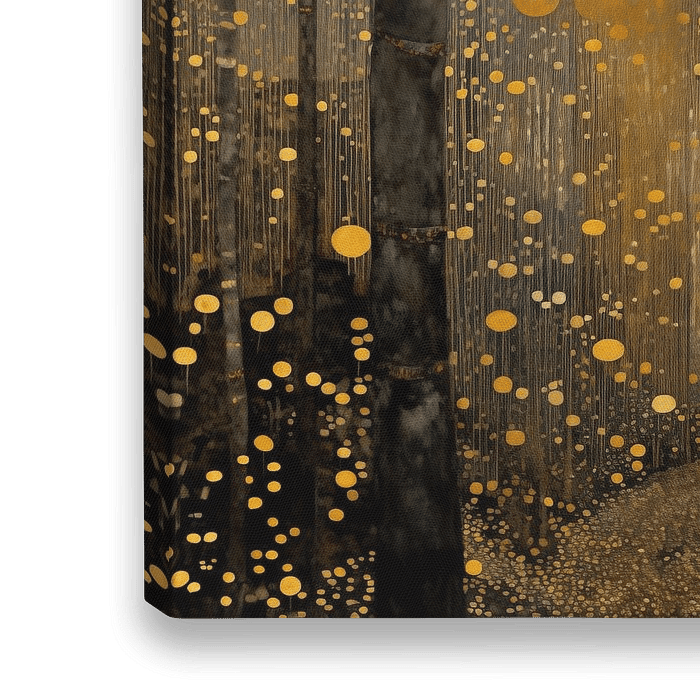 Ein farbenfrohes digitales Gemälde eines goldenen Waldes. Das Werk verleiht Ihrem Interieur einen warmen und klassisch eleganten Look!